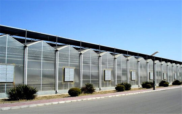 采用熱鍍鋅鋼制骨架,覆蓋材料為5mm鋼化玻璃,透光率在九十以上。溫室大棚頂部及四周為專用鋁型材。溫室大棚頂部為雙向開窗,齒輪齒條副傳動(dòng)。根據(jù)用戶需要,溫室大棚兩個(gè)端面可安裝濕簾和風(fēng)機(jī),也可在兩個(gè)端面及側(cè)面安裝鋁型材推拉窗、平開窗或外翻窗。