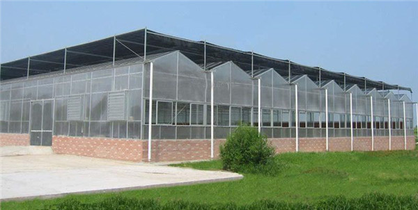 采用熱鍍鋅鋼制骨架,覆蓋材料為5mm鋼化玻璃,透光率在九十以上。溫室大棚頂部及四周為專用鋁型材。溫室大棚頂部為雙向開窗,齒輪齒條副傳動。根據(jù)用戶需要,溫室大棚兩個端面可安裝濕簾和風(fēng)機,也可在兩個端面及側(cè)面安裝鋁型材推拉窗、平開窗或外翻窗。
