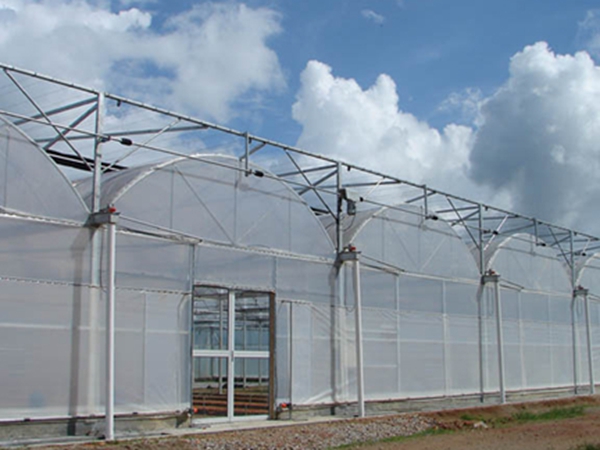 薄膜連棟溫室可作為生產育苗型溫室,用于花卉、蔬菜、苗木的種植栽培,其覆蓋材料的多樣性,決定了該類溫室的適用性。既適合不同要求的使用單位,又適合不同氣候地區。即用戶可根據自身的經濟實力和用途來選擇覆蓋材料和配套設備,以求達到各自的使用目的。